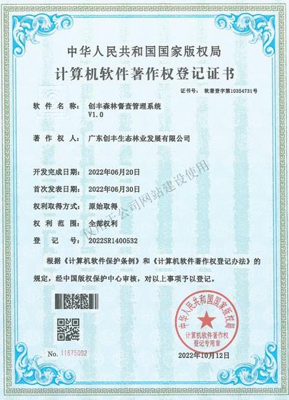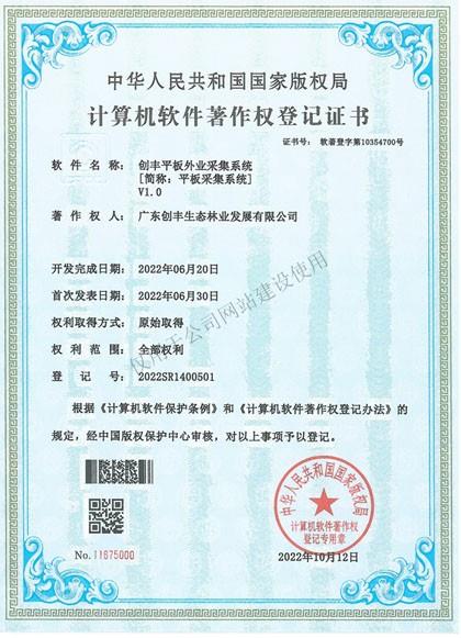 一種自然保護(hù)地的環(huán)境監(jiān)測(cè)裝置-實(shí)用新型專(zhuān)利證書(shū) 一種森林資源野外調(diào)查無(wú)人機(jī)-實(shí)用新型專(zhuān)利證書(shū) 一種野外作業(yè)便攜式多功能標(biāo)尺-實(shí)用新型專(zhuān)利證書(shū) 一種自然保護(hù)地勘界立標(biāo)RTK裝置-實(shí)用新型專(zhuān)利證書(shū) 創(chuàng)豐平板外業(yè)采集系統(tǒng)軟件著作權(quán) 創(chuàng)豐森林掛督查管理系統(tǒng)軟件著作權(quán)